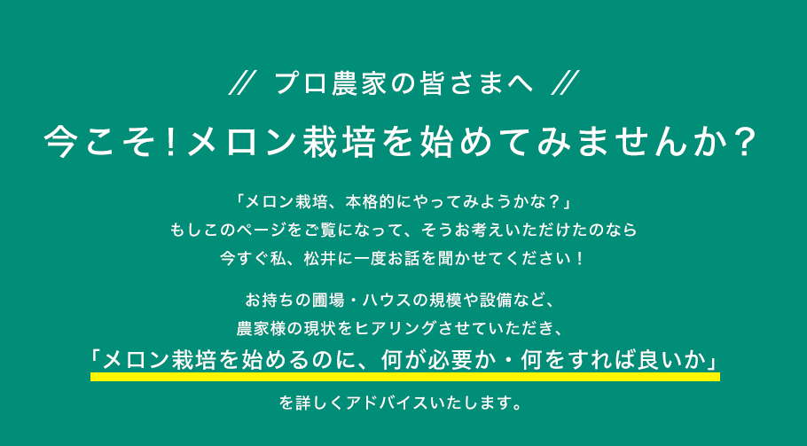 松井農園による「感動のあるメロン作り」を応援するサイトです。